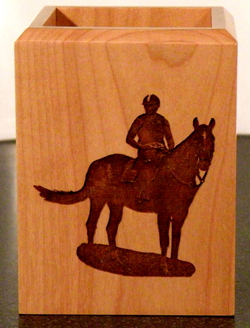 | This is a maple wood pen holder. Basically it is the same as the plaque above but on a lighter color wood. Lighter colored wood makes the images show up much better than the darker woods. | |
